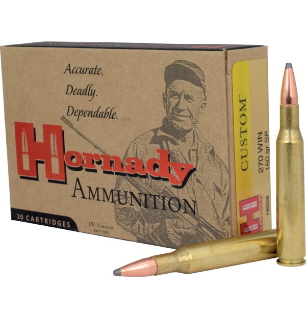 boite de 20 cartouches HORNADY, calibre 270 Winchester, balle de 150gr type interlock SP, destinée à la chasse.