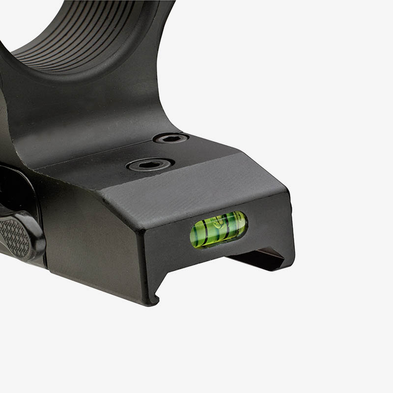 Support cantilever QD solide pour rails Picatinny avec anneaux et niveau à bulle. Pour carabines tactiques et de compétition, conçu pour garantir des performances optimales.